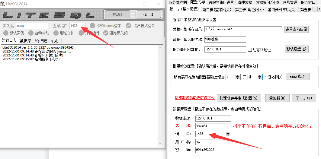 2.检查配置向导中的端口是与liteSql的登录端口是否一致?