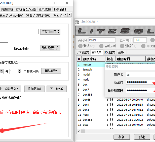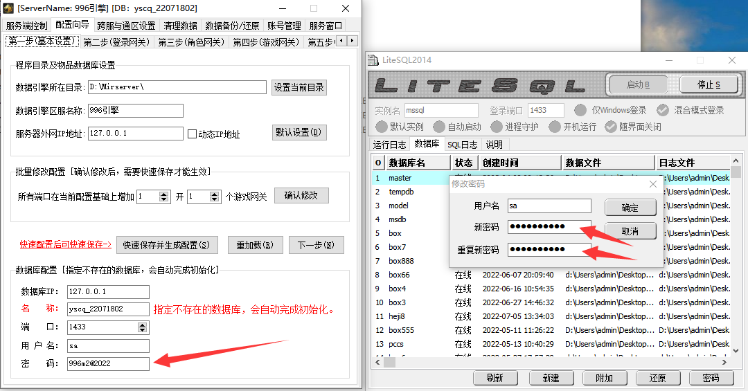 4.手动在liteSql中修改密码,在引擎控制器中填写正确的密码和端口。