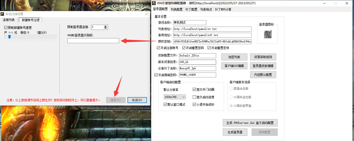 3.微端服务器密码 要跟登录器配置器里同步 然后我们关闭掉