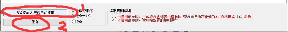 不需要手动修改列表文件JpkList.txt等,只需要点击下方“选择传奇客户端自动读取”然后点击“保存”即可