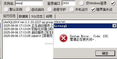 端口=1-65535(需要与LiteSQL程序-登录端口一样 不要用默认的1433和2433端口,所用的端口禁止TCP外网访问)