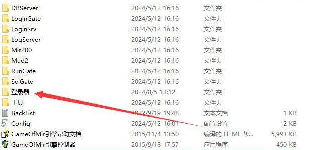 解决办法一:打开你下载的服务端目录MirServer,找到登录器字样的文件夹。