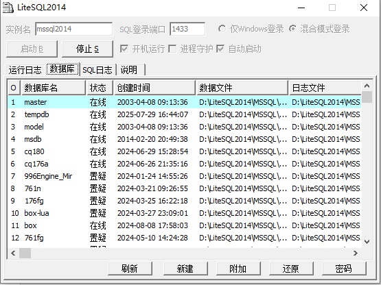 此时,SQL数据库已经设置完成,最小化到系统任务栏即可。