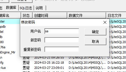 3:点击下方“密码”按钮,设置SQL数据库密码,并记住该密码,如图: