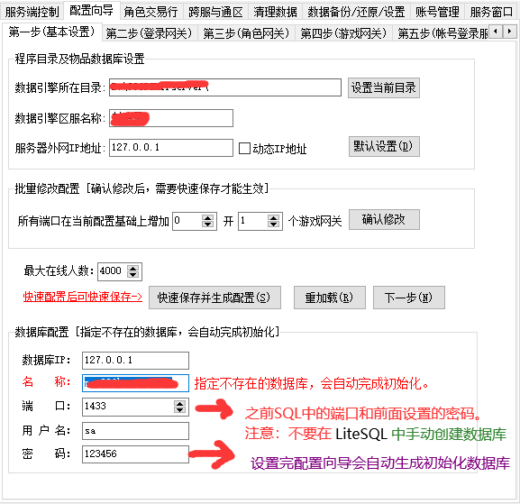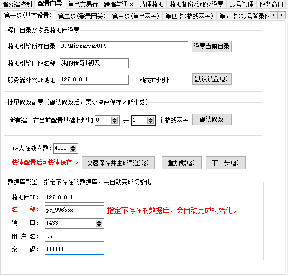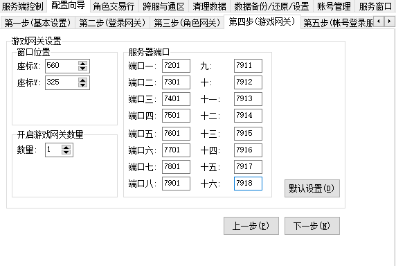 5、996传奇服务端在第四步游戏网关处的(九至十六)处不能+1,要+10,如7901变成7911,如图