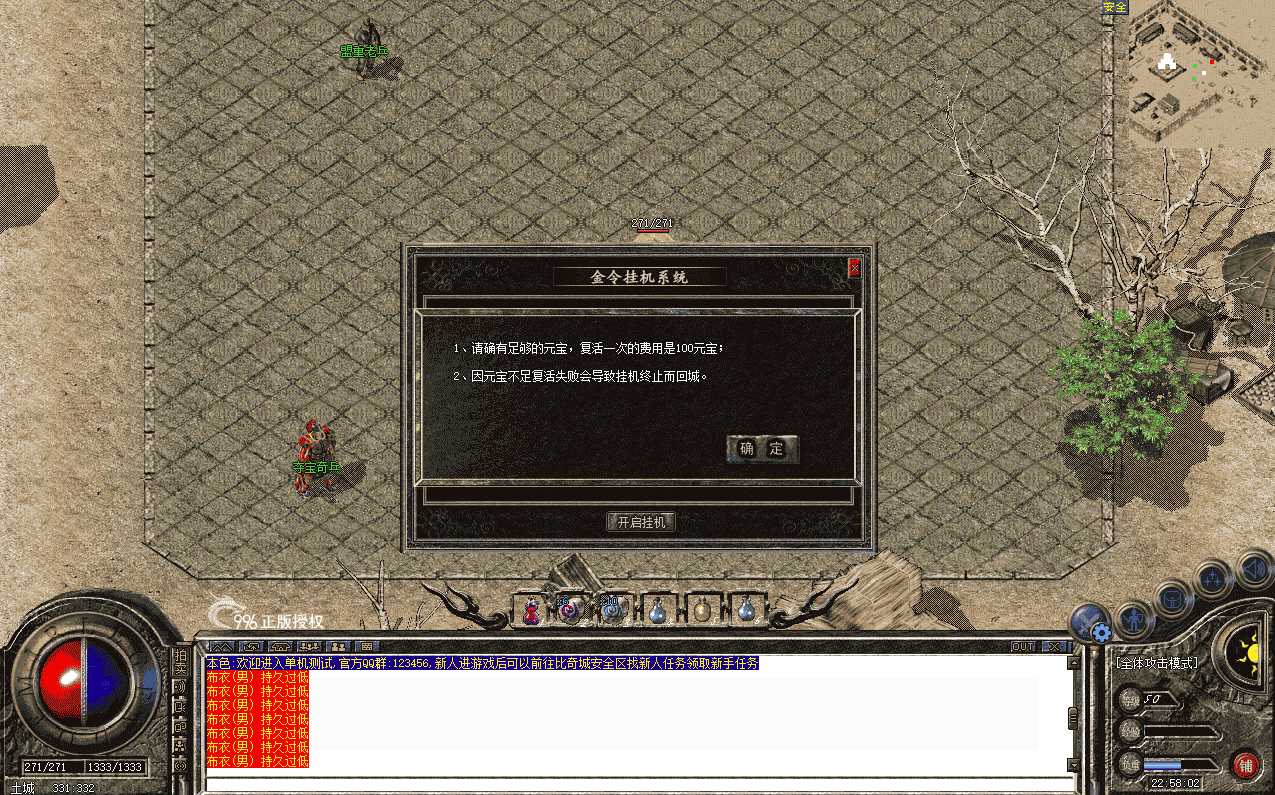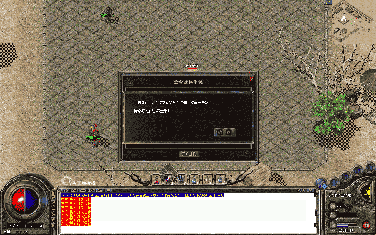 MessageBox 开启特修后,系统默认30分钟修理一次全身装备!特修每次扣取5万金币!