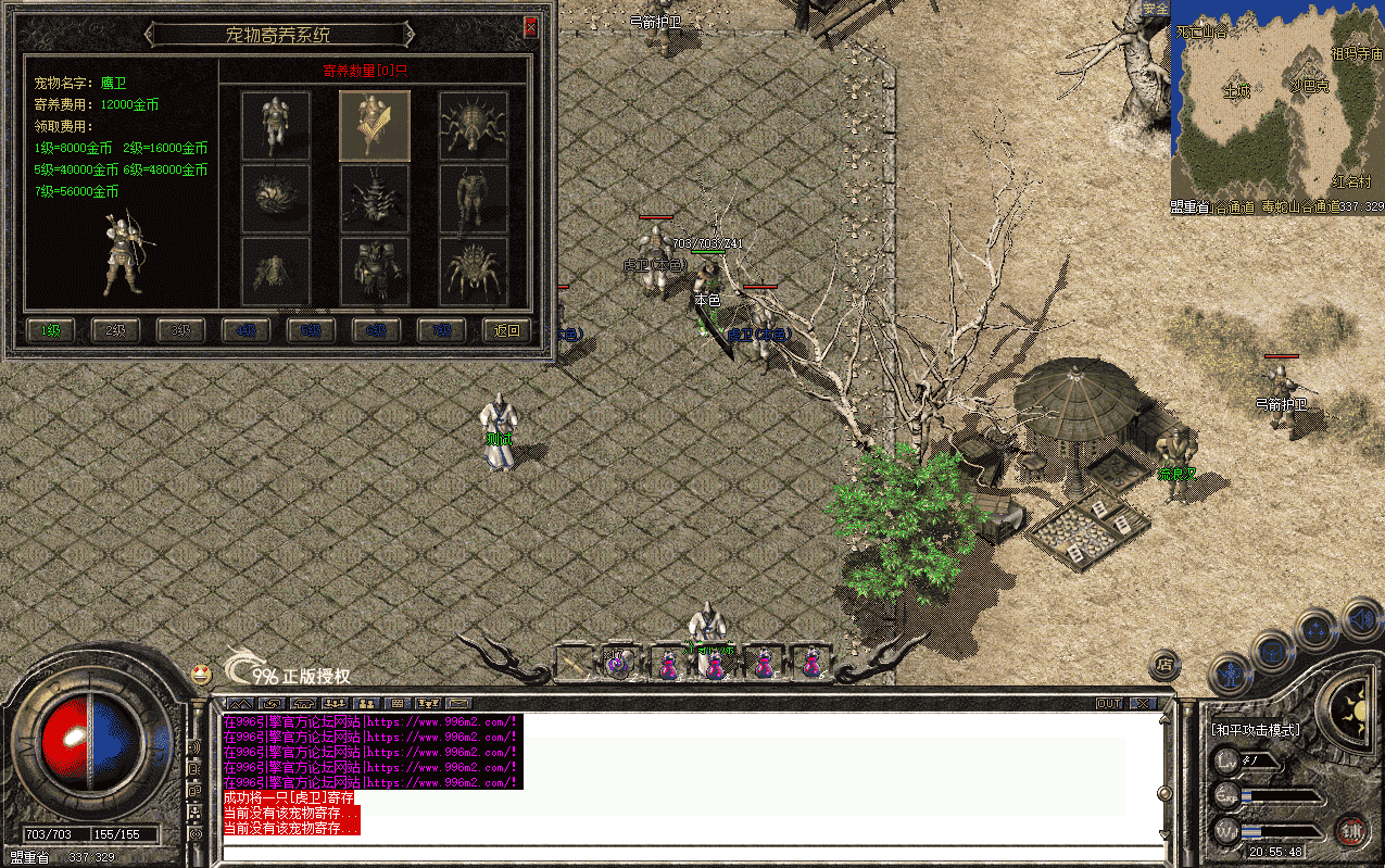 针对法师玩家,召唤宝宝后,不方便携带宠物的时候你可以选择寄养在这里,需要的时候可以随时领回。收取一定的费用(默认金币,可根据需要修改货币类型),寄养数量不限。如果您有时间可以多抓几只寄养以防宠物在野外叛变或死亡。脚本已经增加防刷指纹判断,更安全,更多详细请情况自行参考截图或视频展示。