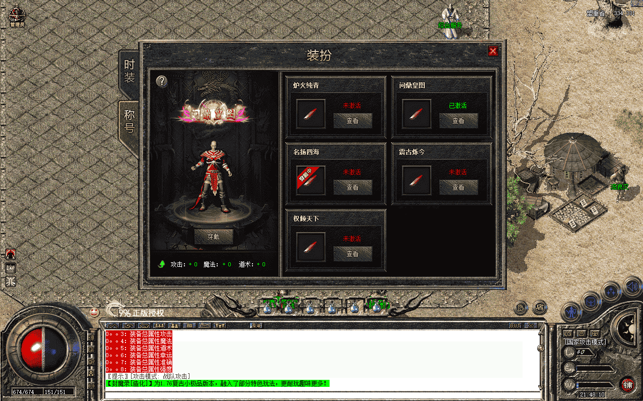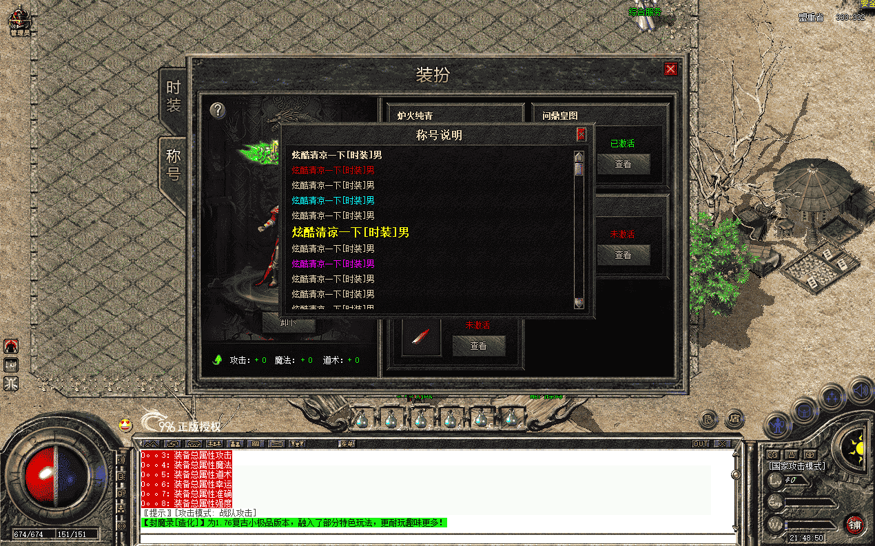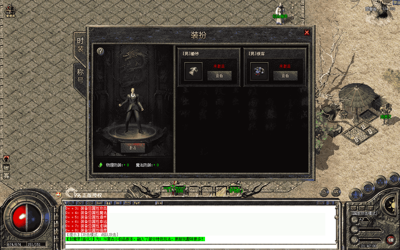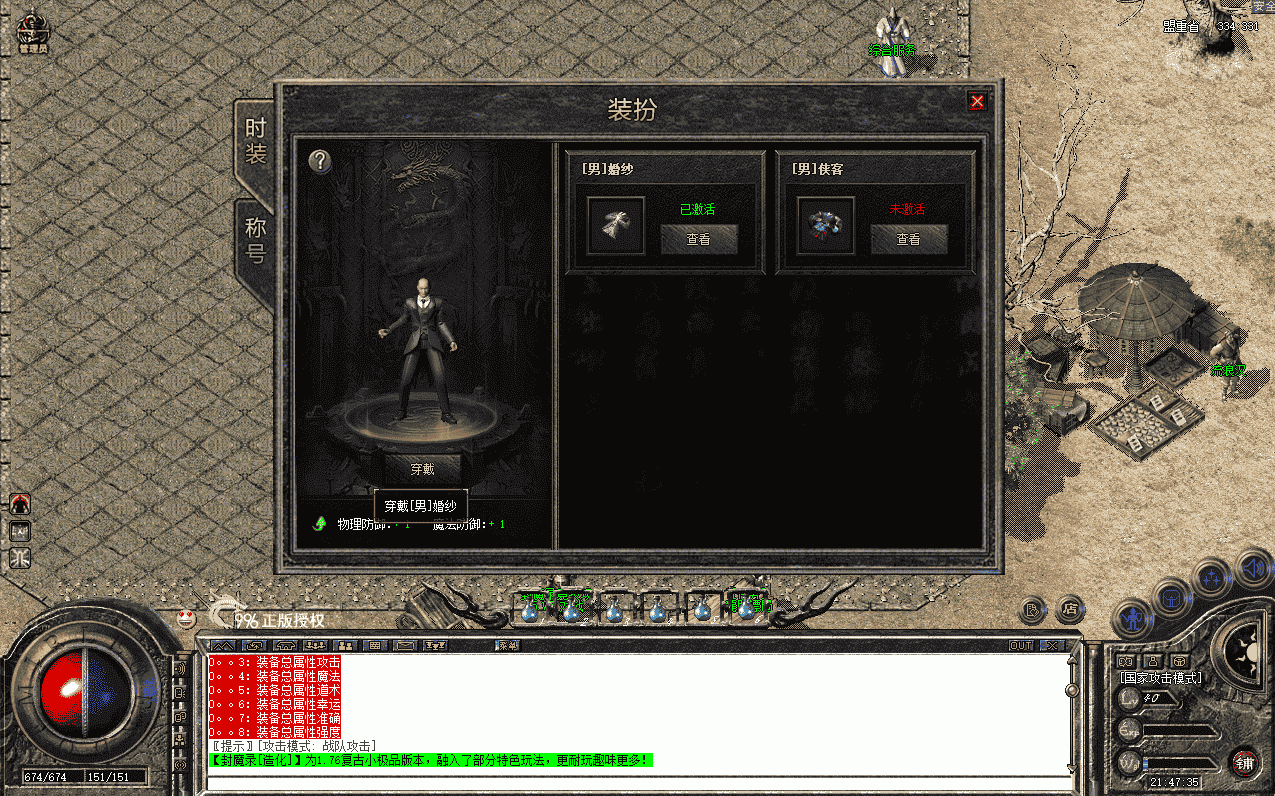 玩家可以消耗货币或材料以及其他条件,激活装扮系统内的时装、称号,并获得人物属性提升(装扮系统设置了2套新百区时装婚纱和侠客(男女均有)、5个称号),激活后可任意切换使用某个时装和称号,获得的属性只要激活便可获得,无需穿戴(可根据自己需要修改),本只是将功能逻辑和流程进行完整的实现,具体数值自行调整,详细图鉴功能请查看演示图片或视频演示。