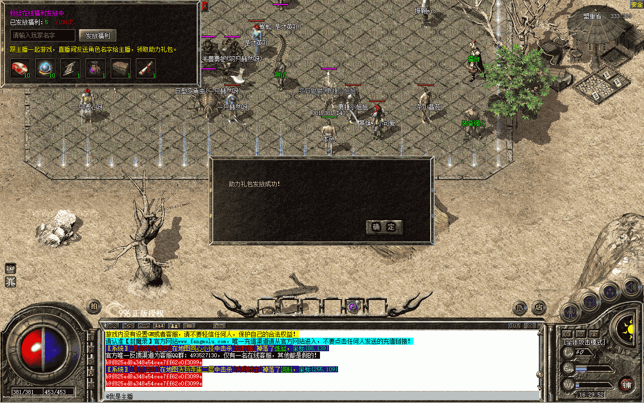 开通权限的各平台主播,在游戏中使用专属的@我是主播权限命令,为在线的玩家发放一定福利,主播助力礼包内容可根据自己的需要进行修改,可限制主播条件为:主播名字、主播名字+机器码的方式。(已邮件的方式发放到玩家信箱且玩家必须在线),每个主播可发放的次数为100次,也可以根据需要在脚本中进行调整。