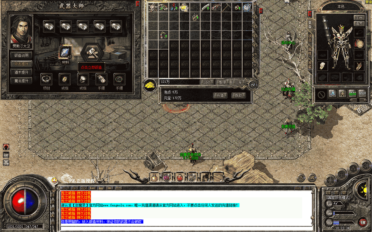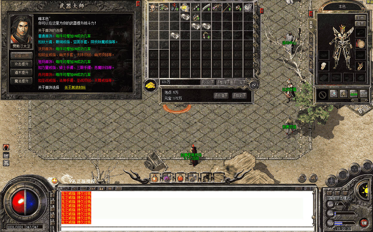 还在为版本中系统自带的沙巴克武器升级几率无法控制烦恼吗?该脚本保持和原有的武器升级机制一致,增加了可选使用辅助材料来控制升级失败武器是否破碎,同时升级的武器的成功几率以、持久度、最大升级点数的的可控性更高,通过更改配置信息调整到适合的程度,在升级所消耗的首饰上的控制也更加灵活,具体可参考网站中的图片或视频。