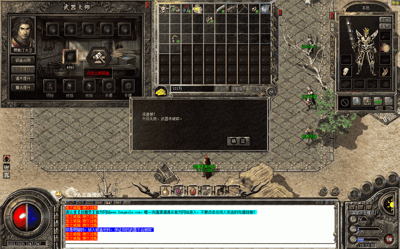 messagebox 很遗憾!\升级失败,武器已经破碎。