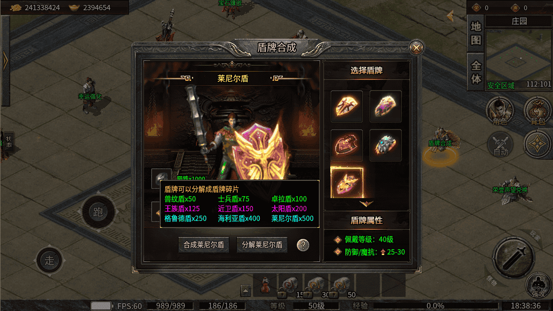如视频所示,开放了多种盾牌合成功能,使用制定的材料+货币,可以合成对应的盾牌,此盾牌包括了觉得的内观、外观、背包素材及特效,属性可通过配置文件进行自定义设置,具体请参考截图或者视频效果。