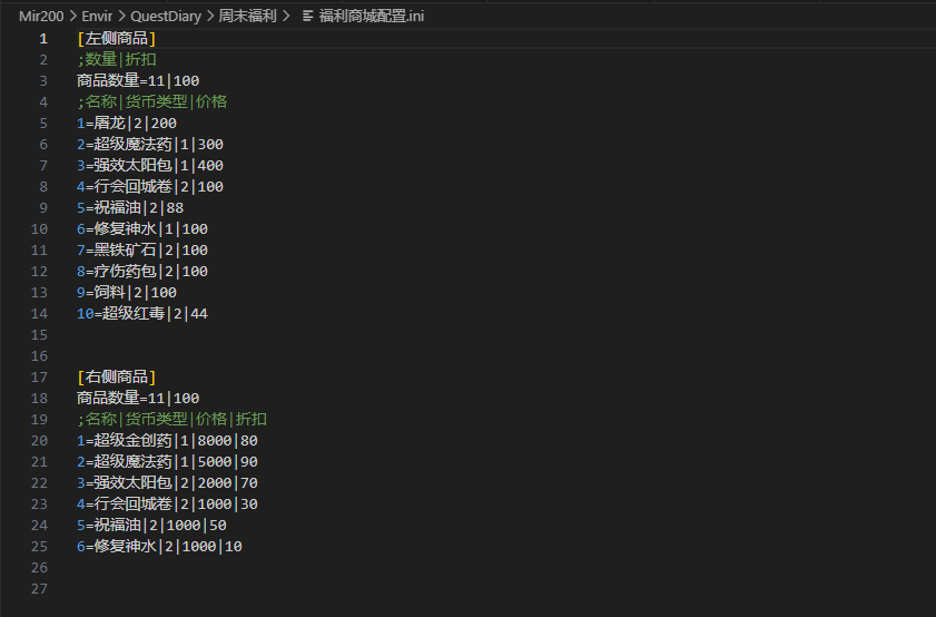 - Mir200\Envir\QuestDiary\周末福利\福利商城配置.ini